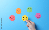 Hand picked happy smile face icon. Client questionnaire, Customer service, Business evaluation, User give rating to service experience, Customer review satisfaction feedback survey concept.