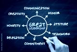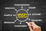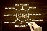 Great Leadership - how to inspire others with their vision of the future, influence and inspire others to follow them in achieving great results, mind map concept on blackboard