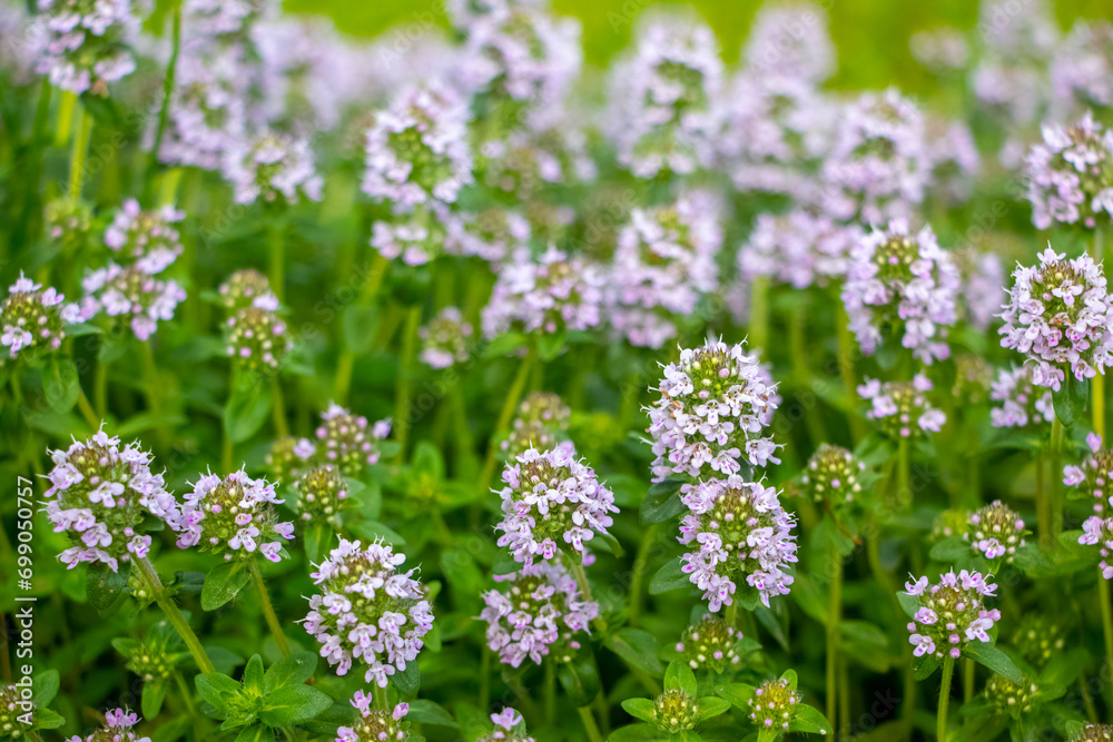 Thyme blooms in the spring. Thyme is a medicinal and honey-bearing plant