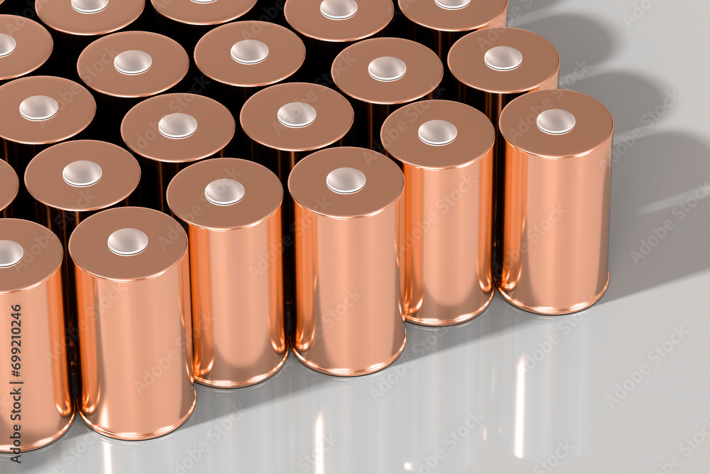 pack 4680 format cylindrical lithium traction peach battery for modules, high energy cylindrical accumulator for Electric Vehicle or Hybrid Car, advanced technology, Automotive Industry, 3d render