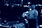 portrait mechanic worker fixing and checking a car air conditioning system in automobile repair shop