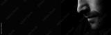 Bearded man bend down the head in dark room Guy looks down on black background with side view Concept serious depression and dismal Alone businessman close eyes and hopeless depressed He get lonely