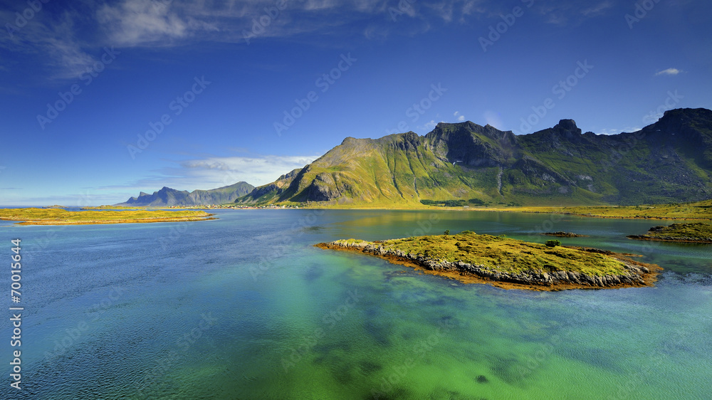 Norwegia , Lofoty, Sakrisoy, krajobraz wiejski