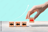 business direction concept. A new dimension in working with wooden blocks. Create a competitive advantage