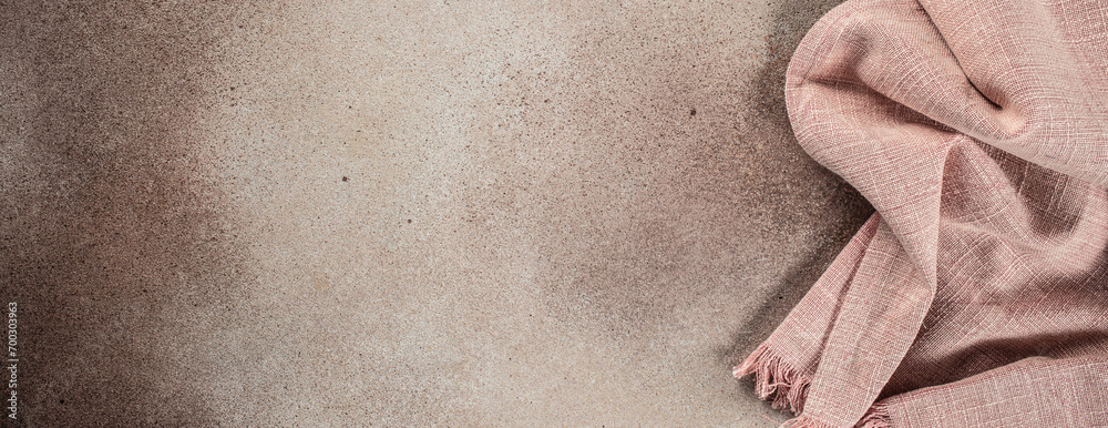 Light background with pink textile napkin. Food background for recipe, cooking ingredients and restaurant