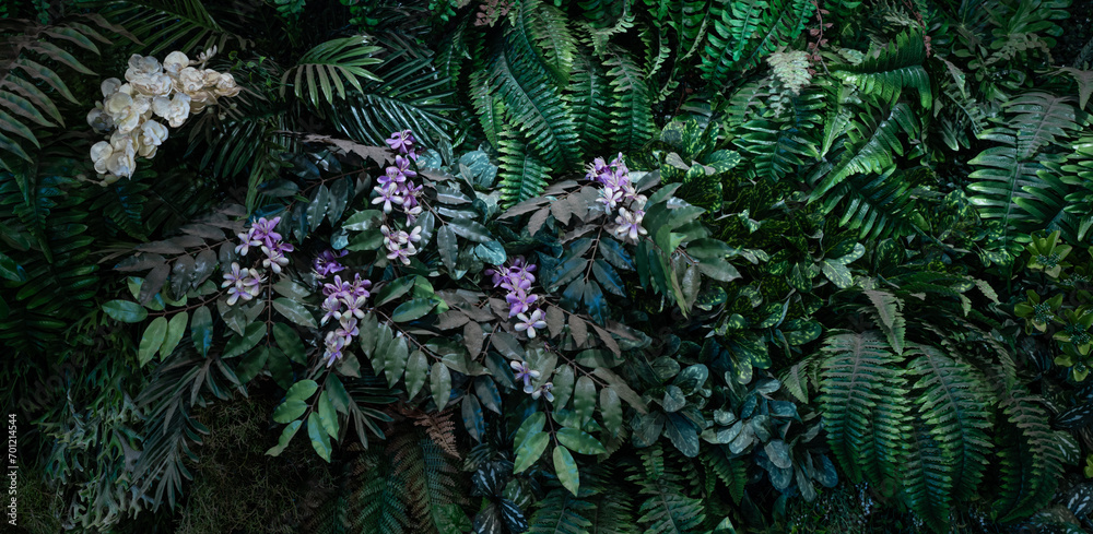 Creative nature wall background, tropical leaf banner or floral jungle pattern concept.