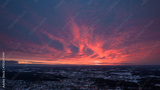 Afterglow over Dramatic Sky at Sunrise. Colorful sky at dawn with a serene and scenic landscape. Cityscape at Sunset with Beautiful Sky and Urban Landscape