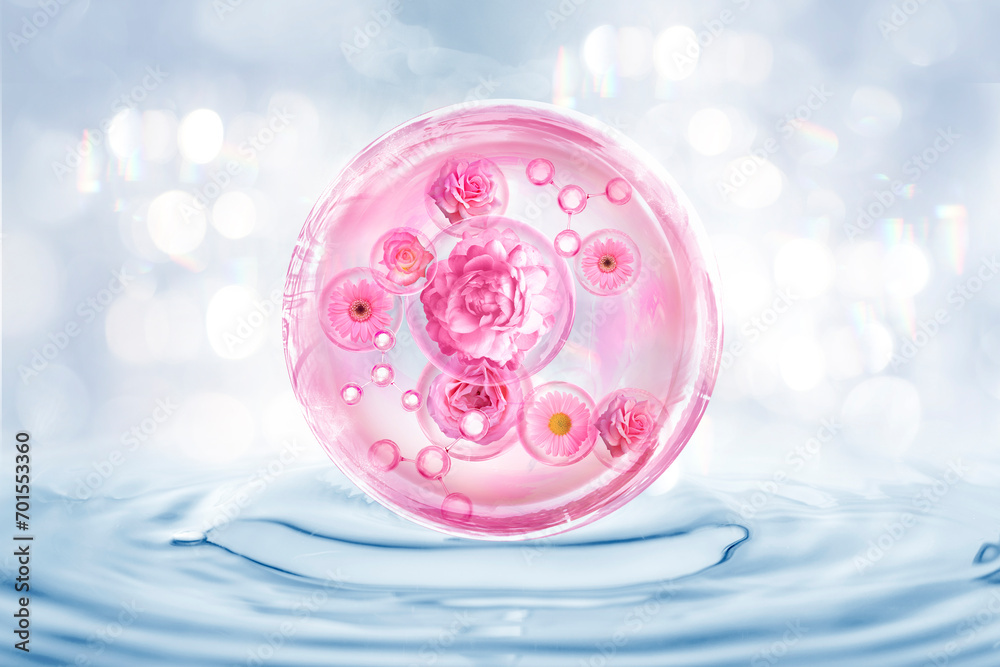pink molecule and flower in bubble
