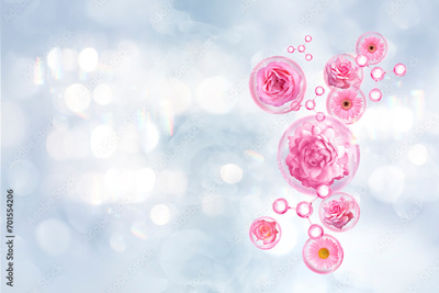 pink molecule and flower in bubble