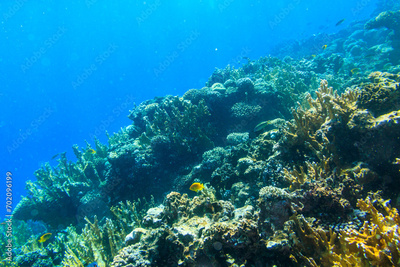 Different tropical fish at coral reef in the Red sea in Blue lagoon, Sinai peninsula in Egypt