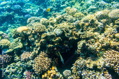 Different tropical fish at coral reef in the Red sea in Blue lagoon, Sinai peninsula in Egypt