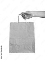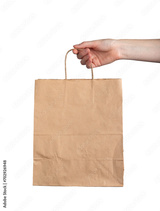 Kraft paper bag in hand, blank package mock up, mockup isolated on white