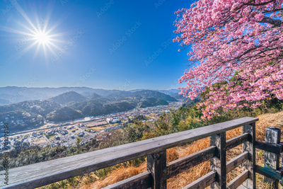 春の河津城跡公園 展望台から眺める河津町と河津桜【静岡県】 Observatory of Kawazu Town in Bloom of Beautiful Kawazu Cherry Blossoms - Shizuoka, Japan