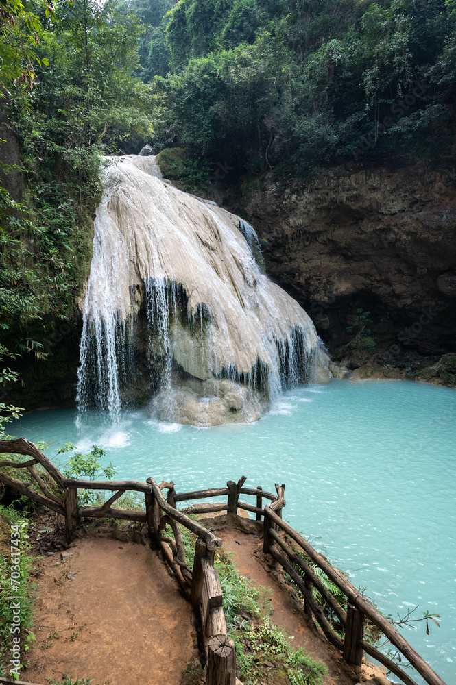 Beautiful view of Koh Luang Waterfall in Maeping National Park of Lamphun province, Thailand. It is a limestone waterfall with spectacular beauty.