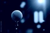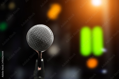 Microphone for press conference speaker report interview concepts or broadcasting public speaking speech presentation stage performance and reporter news with empty copy space background.