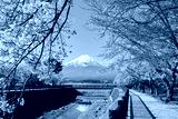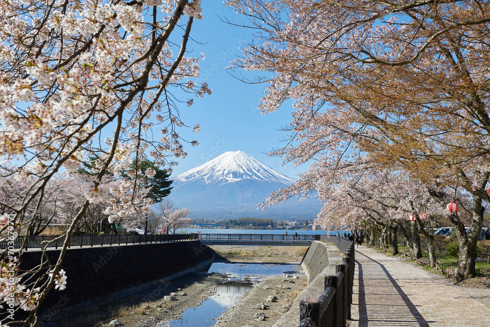 Mount Fuji with cherry blossom at Lake Kawaguchiko, Yamanashi prefecture, Japan