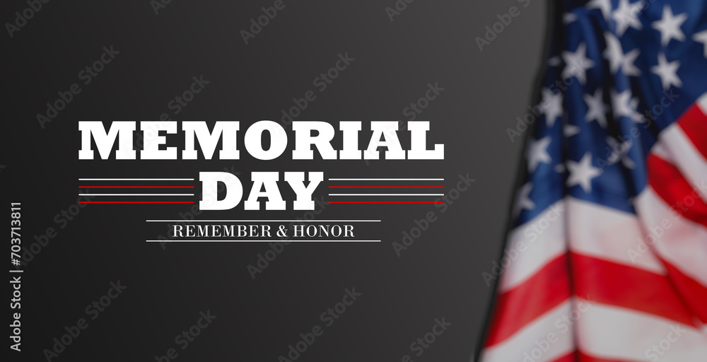Memorial Day. Remember and Honor. United states flag poster. American flag and text on black with stars background for Memorial Day. Vector illustration.