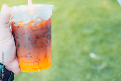 Tasty refreshing drink with coffee and orange juice. The concept of drink menu product.