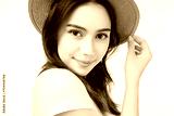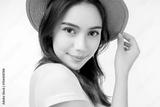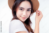 Pretty smiling joyful female wear hat looking with satisfaction at camera being happy Studio shot Cute woman is good looking beautiful lady isolated over white background copy space Portrait cute girl