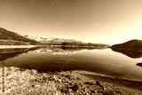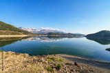 Reflection of trees and green leaves in the lake water. Liquidambar orientalis protected area in Burdur Turkey. Karacaoren ( barrage ) dam lake. Panorama.