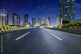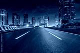 Asphalt road and modern city commercial buildings at night in Shanghai