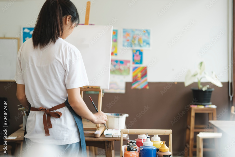 Crafting Inspiration: Female Artist Sketching and Painting in Workshop