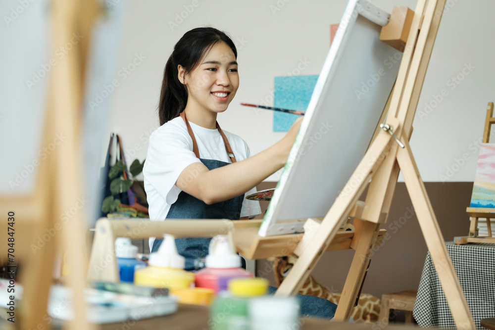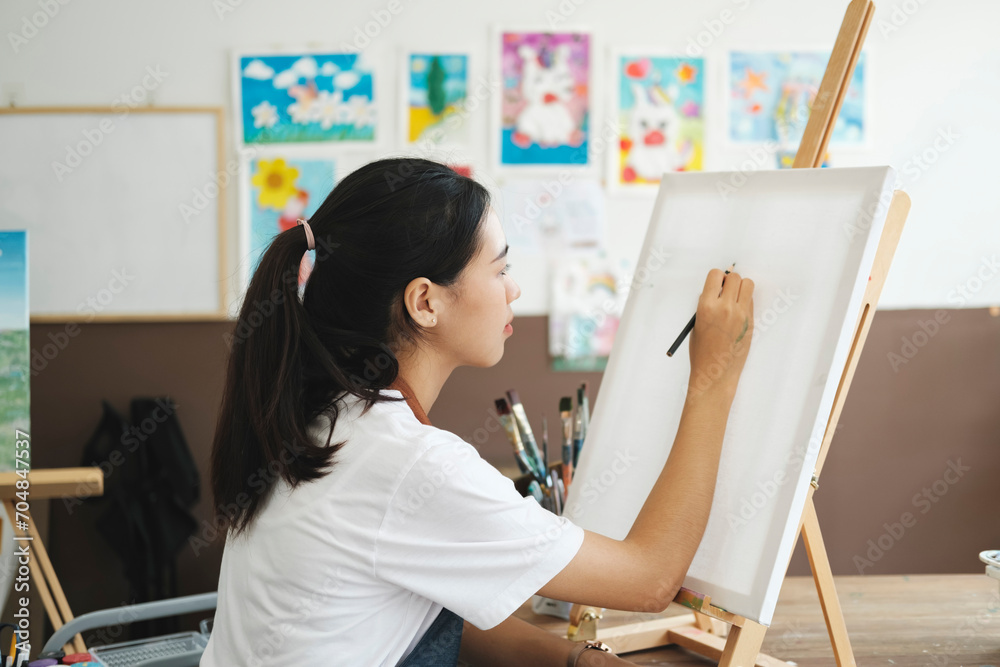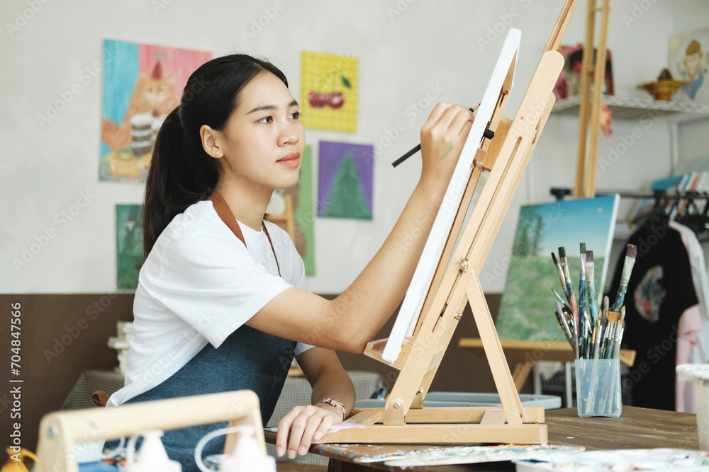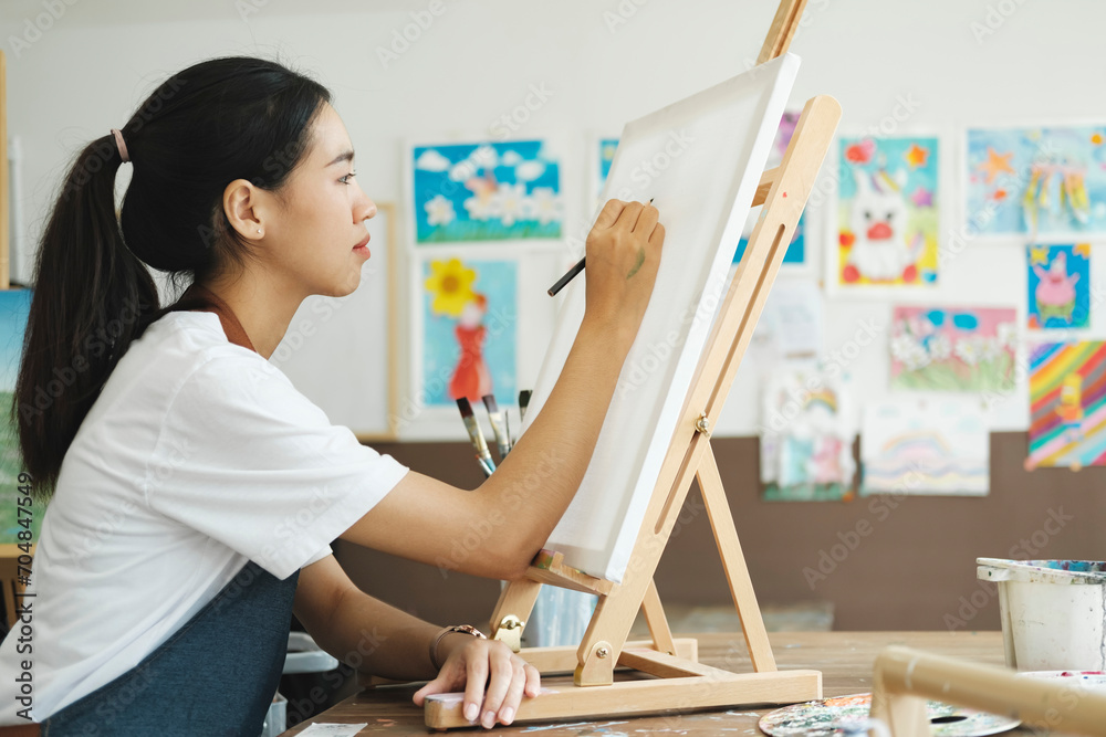 Crafting Inspiration: Female Artist Sketching and Painting in Workshop