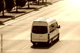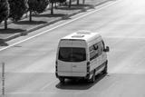 Passenger white minibus accelerating ride on highway