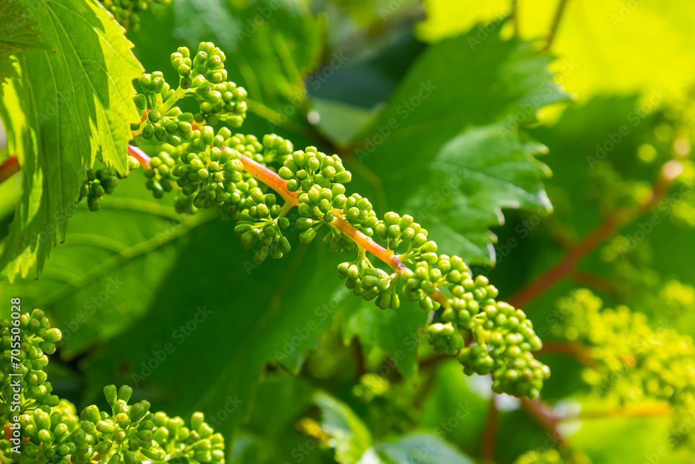flower buds and leaves of shoots grapevine spring, agriculture nature background