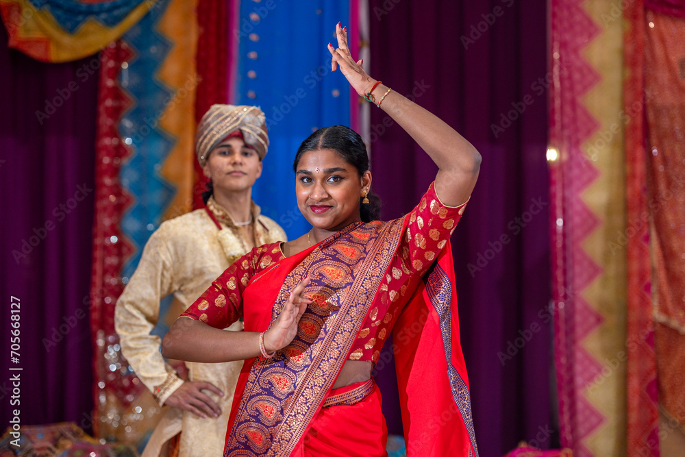 young Indian couple pose prepared for Bharathanatiyam Indian dance