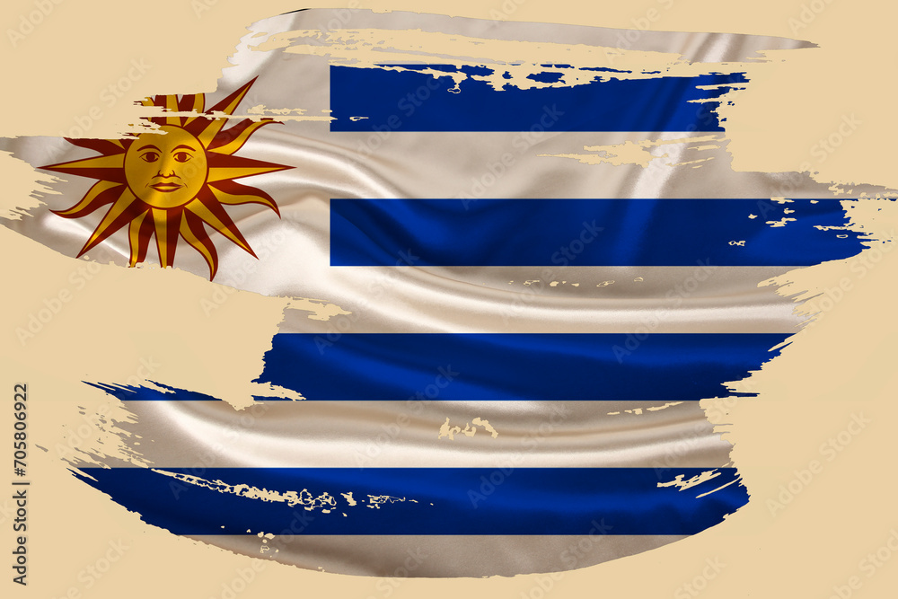 creative national grunge Uruguay flag, brushstroke on background, concept politics, global business, international cooperation, rights and freedoms of citizens