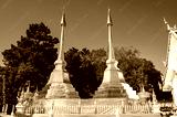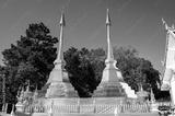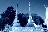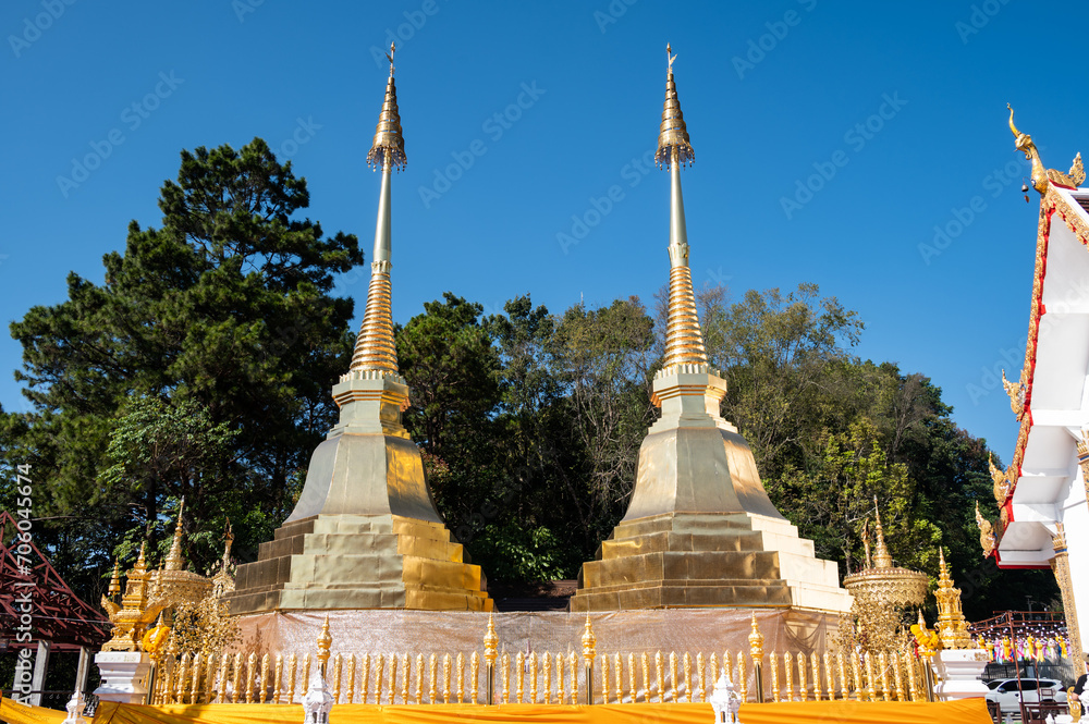 An iconic twin pagoda in Wat Phrathat Doi Tung temple in Chiang Rai province of Thailand.