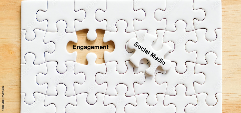 Social media and engagement word on jigsaw puzzle background, Digital marketing concept