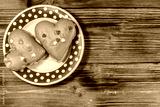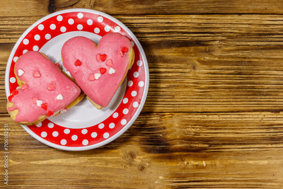 Heart shaped cookies on wooden table. Top view. Dessert for Valentine day
