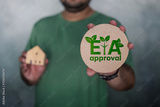 Alphabet letter in word tag EIA, abbreviation of Environmental Impact Assessment on man hand. the environmental consequences of a plan before the decision.