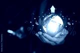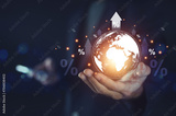 Businessman holding globe and rising interest rates Conceptual image of the problem of high interest rates affecting business