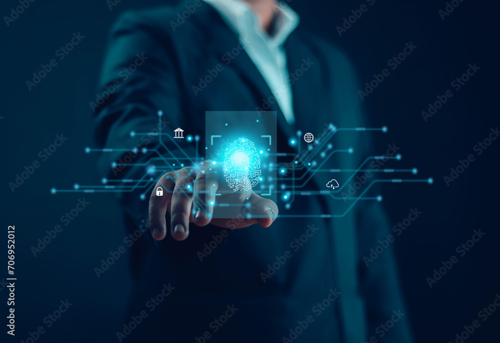 Businessman's fingerprint scanning biometric, ID, finger, identity, access, data, digital, scan, touch, lock, protection, control, security, human, privacy, Security Access with Biometric Identificati