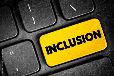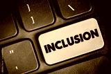 Inclusion - state of being included or being made a part of something, text concept button on keyboard