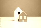 Wooden figures of houses, minimalism. Realtor services. Buying and selling. Housing options. Affordable housing. Mortgage.