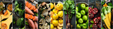 Photo collage from different food photos. Set of fresh vegetables, fruits and organic healthy food. Photo banner for a food site.