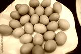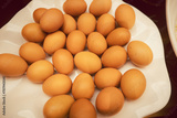 Many boiled chicken eggs in a plate ready eat in hotel buffet