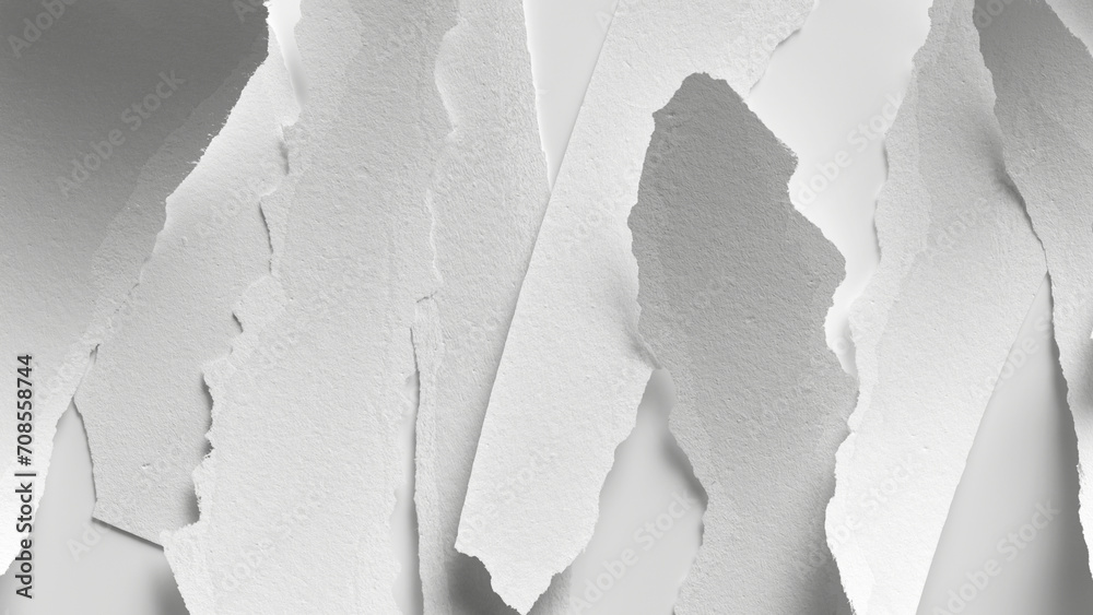 3d rendering, messy torn blank paper pieces isolated on white background. Abstract minimalist wallpaper