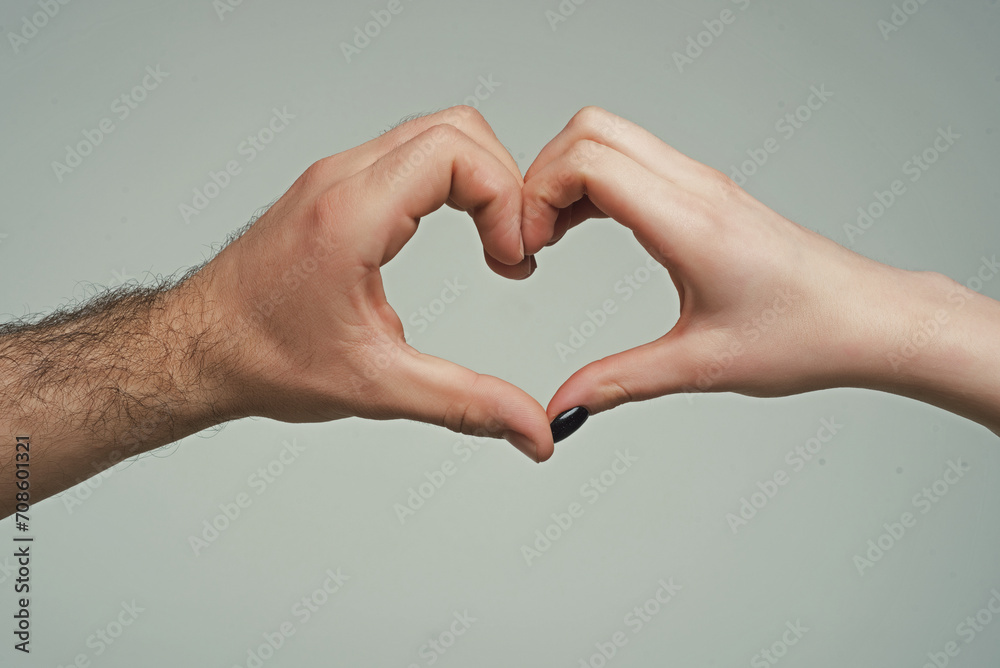 Love and valentine's day symbol. Valentines card for Valentines Day. Valentine design. Happy Valentine. Female and male hands in form of heart. Hands in shape of love heart. Love on Valentine day.