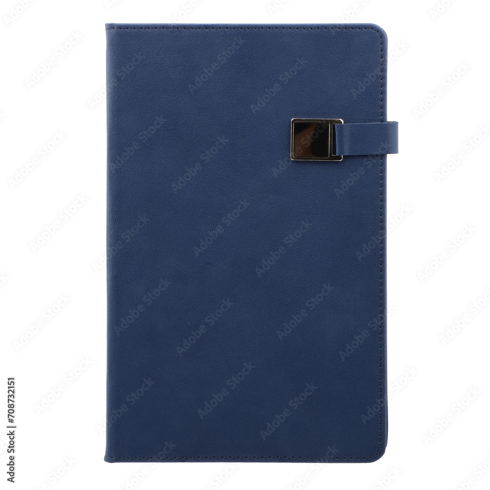 Blue Leather Organizer, Daily Notebook with Magnet, isolated on white background. Stylish daily planner, clipping path. Isolated background.