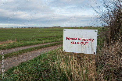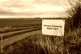 Private Property Keep Put sign seen at the entrance to a private track leading to a farm. Known to have issues with illegal fly tipping in the area.