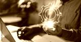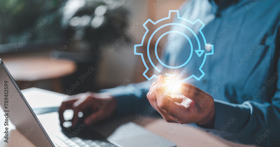 technology, digital, gear, artificial, cog, innovation, intelligence, learning, machine, network. put gear in digital circuit with light bulb inside, improve office workflow and change strategy.