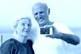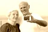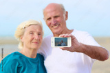 Senior couple making self photo on the beach