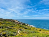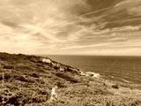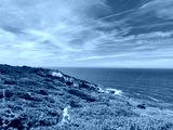 Beautiful rocky ocean coast, blue ocean horizon, natural ocean view