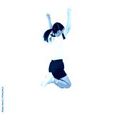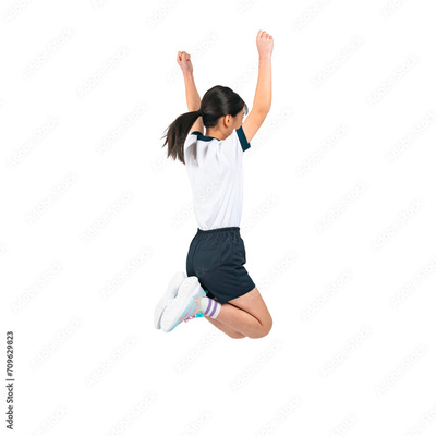 ジャンプする体操服を着た女の子の後ろ姿 手作業で精密に切り抜いた背景透過写真PNG