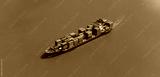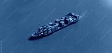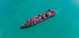 Aerial side view of cargo ship carrying container and running for export goods from cargo yard port to custom ocean concept technology transportation, customs clearance.